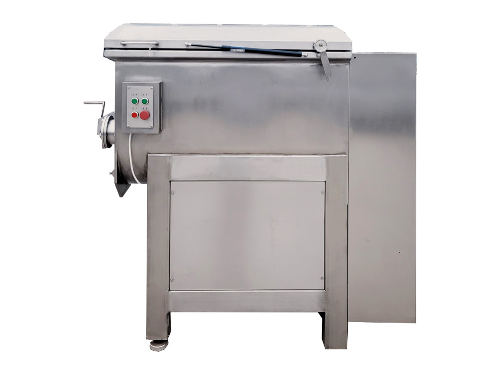 →雙軸雙速拌餡機  →型號 150/350/600/1200升  →功能  適合各種餃子、包子等肉類及蔬菜類餡料的攪拌  →特色  1、采用平行雙軸結構,螺旋板式槳葉,物料在料斗中翻動的同時作圓周運動,同時完成軸向回流,使各種物料攪拌的更加均勻。  2、采用雙速雙動力,根據所拌餡的種類及工藝選擇不同的轉速和不同的運轉方式進行攪拌。  3、上蓋后端設有行程開關,根據上蓋的開合,自動切斷或接通電源,操作方便,安全可靠。  4、整機采用不銹鋼制造,易于清洗,美觀大方。符合國家衛生標準。  5、可根據客戶的需求定制自動進水,自動起蓋,自動排料等功能。  →主要技術參數產品型號面斗容積(L)額定功率(kw)攪拌轉速(rpm)額定電壓(v)外形尺寸(長×寬×高)SZJ   150升1501.5/2.442/84380920×665×990SZJ   350升3502.2/3.342/843801180×880×1390SZJ   600升6003.0/4.542/843801430×1080×1590SZJ  1200升12005.0/7.542/843801600×1530×2750
