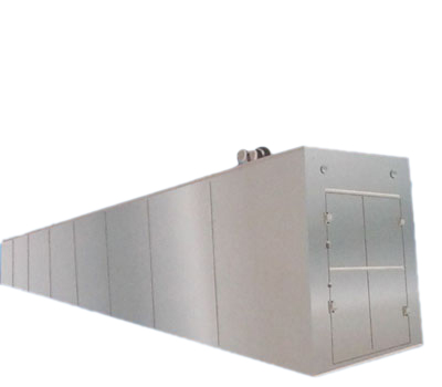 本機為隧道式多層干燥爐,爐內干燥工作面分為10層,由10臺變頻調速電機分別控制,能理想的實現米雪餅餅坯的干燥。